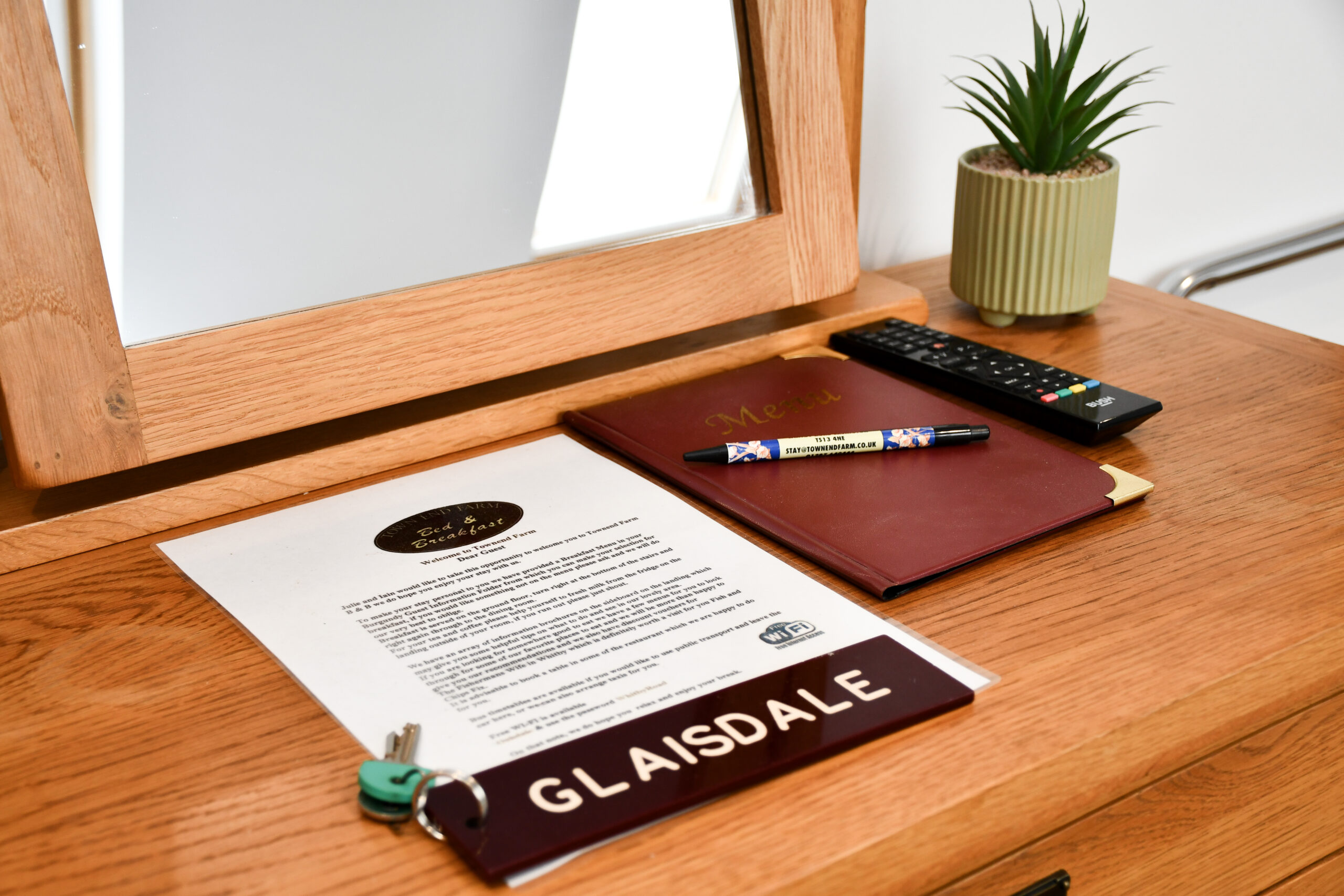 Glaisdale, as with all our rooms, features a wall mounted Television, Tea and coffee making facilities and has a shared communal fridge just outside of the door.