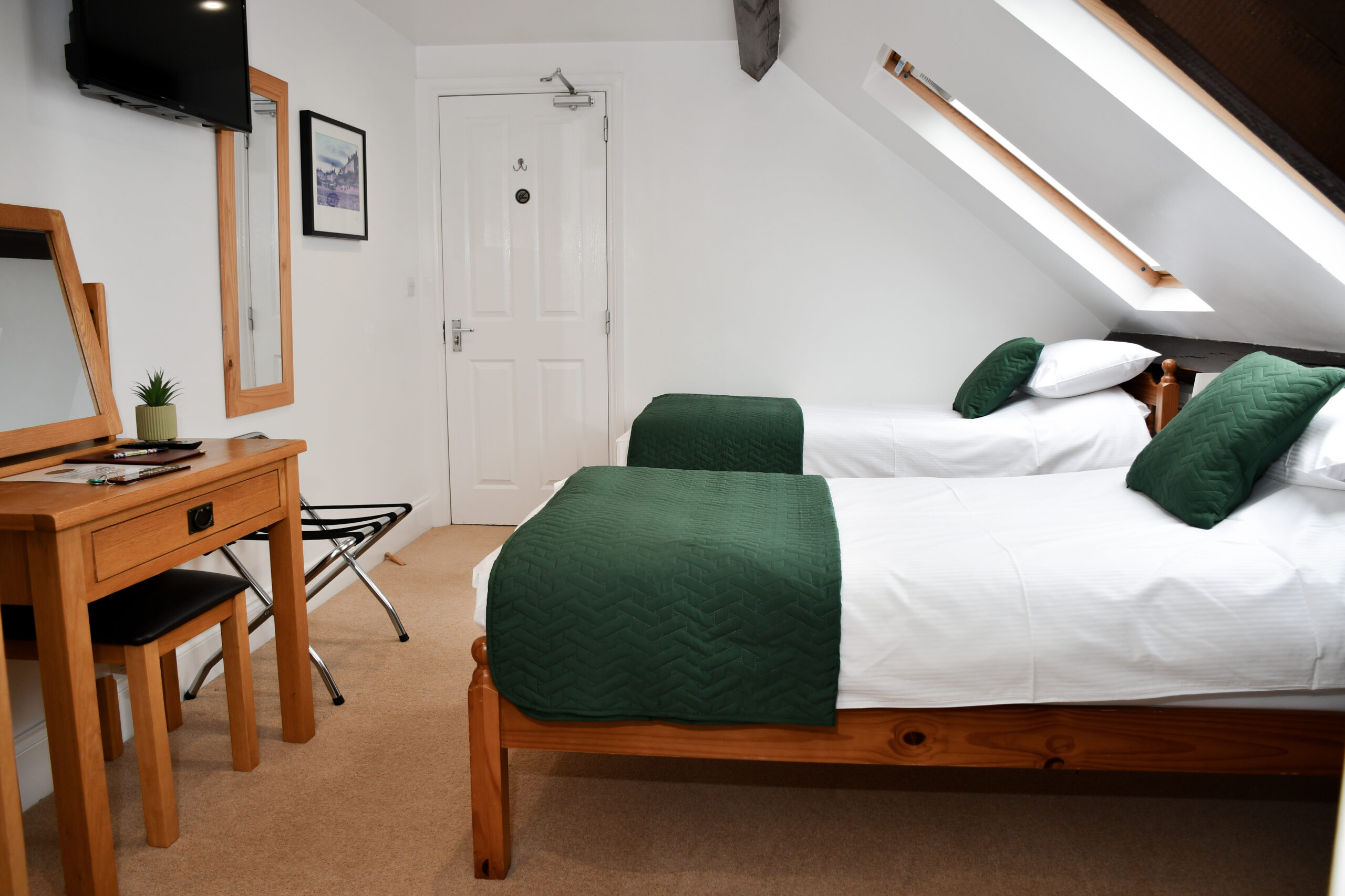 Glaisdale, our Elegant Twin Room, is a rear facing room with view of the garden and fields behind. With the original beams on show, these rooms have plenty of character and a rustic yet modern feel to it.